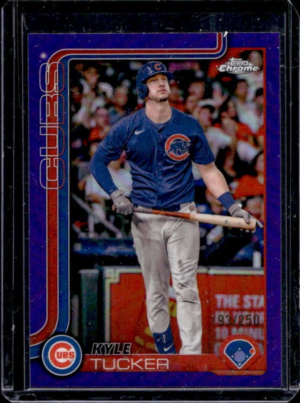 The Kyle Tucker 2025 Topps Chrome #103 Purple Refractor /250 card is 1 of 52 Kyle Tucker's card variations in the 2025 Topps Chrome set being tracked by Sports Card Investor, including Base, Geometric Refractor, Lightboard Logo Variation, Negative Refractor, and Prism Refractor.