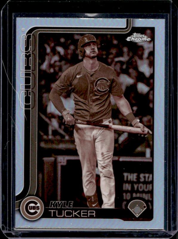 The Kyle Tucker 2025 Topps Chrome #103 Sepia Refractor card is 1 of 52 Kyle Tucker's card variations in the 2025 Topps Chrome set being tracked by Sports Card Investor, including Base, Geometric Refractor, Lightboard Logo Variation, Negative Refractor, and Prism Refractor.