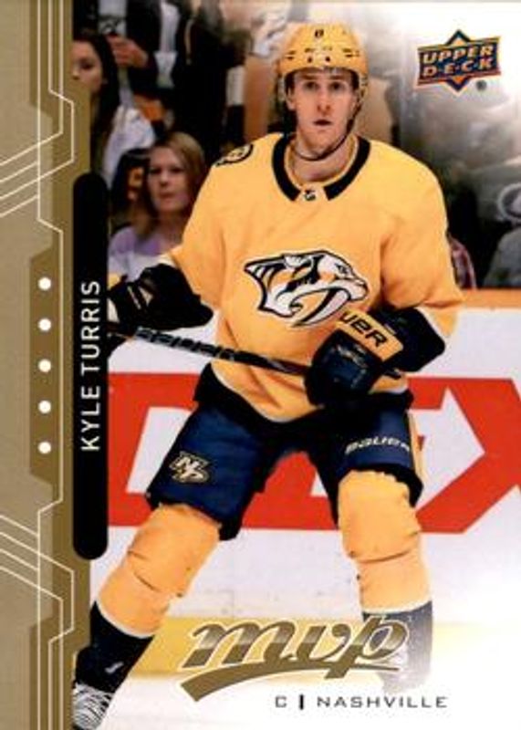The Kyle Turris 2018 Upper Deck MVP #178 Base card is 1 of 11 Kyle Turris' card variations in the 2018 Upper Deck MVP set being tracked by Sports Card Investor, including Factory Set Blue, Green Script, Puzzle Back, Silver Script, and Gold Script /150.