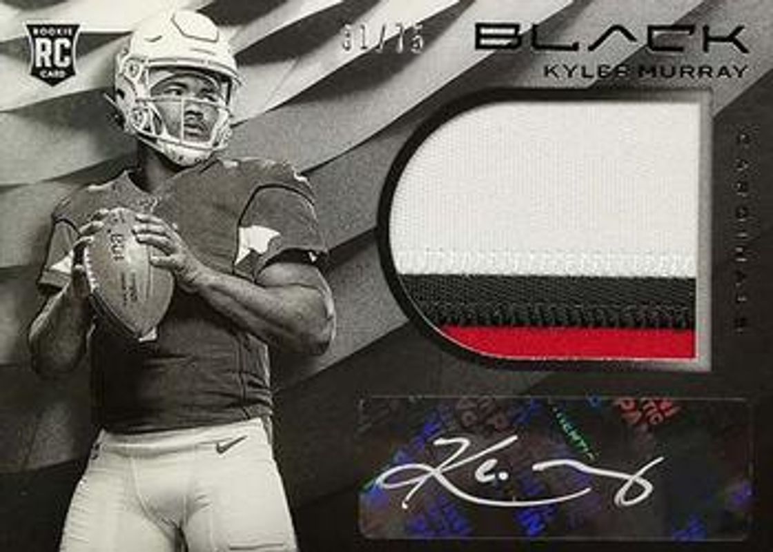 The Kyler Murray 2019 Black #101 Base /75 Rookie card is 1 of 10 Kyler Murray's card variations in the 2019 Black set being tracked by Sports Card Investor, including Silver /35, Copper /25, Gold /10, Platinum /1, and Futuristic Relics /75.