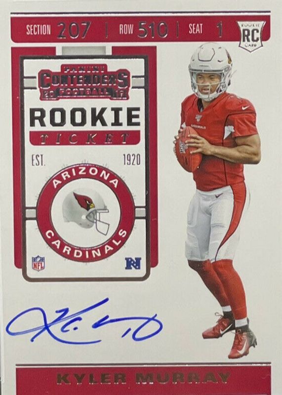 This card is 1 of 4 Kyler Murray's card variations in the 2019 Contenders set being tracked by Sports Card Investor, including Rookie Ticket Auto, Rookie Ticket Auto - Red Zone Ticket, and Rookie Ticket Auto Variation - Red Zone Ticket.