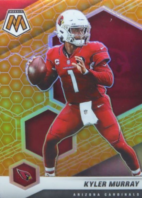 The Kyler Murray 2021 Mosaic #8 Honeycomb /(SSP) card in Raw condition has not changed in price in the last 30 days and was last sold for $35.00 .
