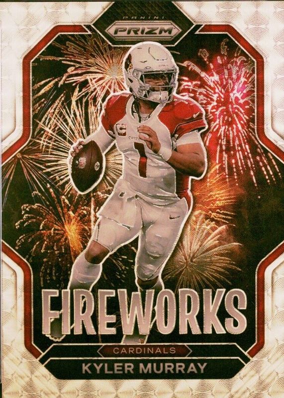 This card is 1 of 6 Kyler Murray's card variations in the 2022 Prizm set being tracked by Sports Card Investor, including Fireworks - Green Ice, Fireworks - Blue Ice /99, Fireworks - Purple Power /49, Fireworks - Gold /10, and Fireworks - Black Finite /1.