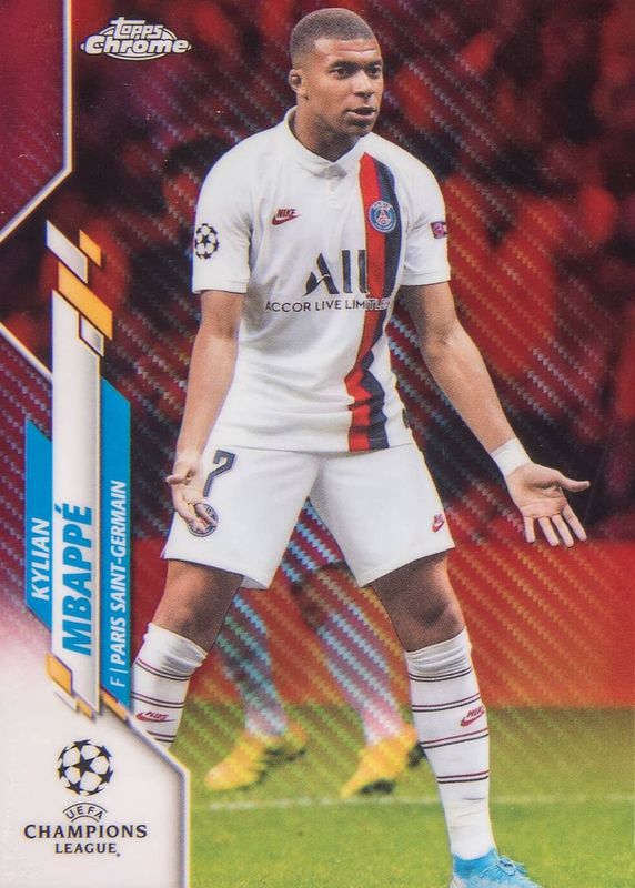 Kylian Mbappe 2019 Topps Chrome UEFA Champions League #26 Red Carbon Fiber Refractor RAW Price Guide