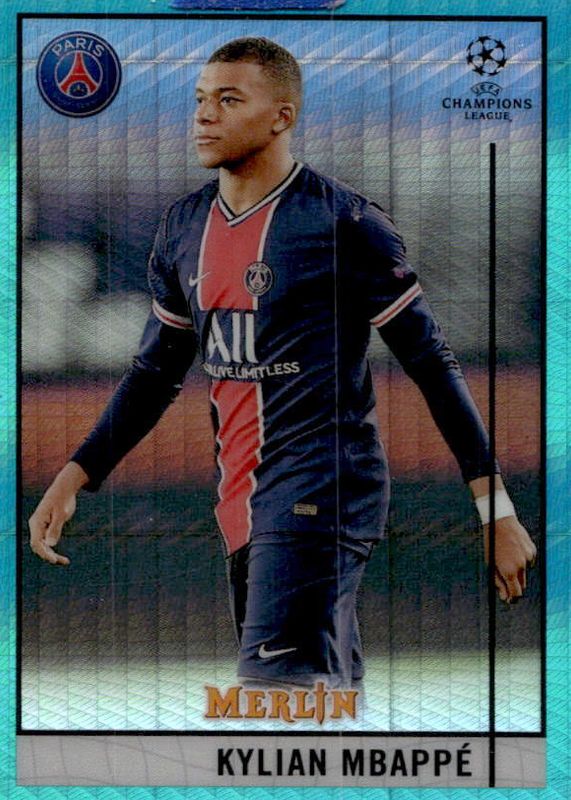 2020-21 Topps Merlin Chrome UEFA UCL Kylian Mbappe Aqua Prism #100
