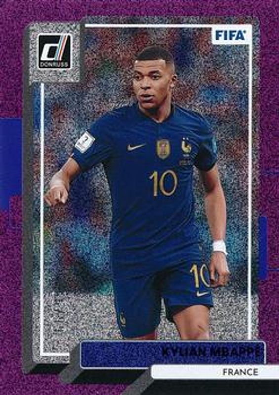 The Kylian Mbappe 2022 Donruss #51 Purple /99 card is 1 of 34 Kylian Mbappe's card variations in the 2022 Donruss set being tracked by Sports Card Investor, including Base, Green, Optic, Optic - Green Ice, and Optic - Holo.