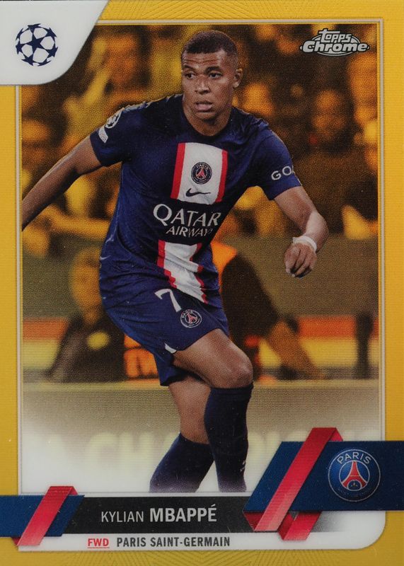 Kylian Mbappe 2022 Topps Chrome UEFA Club Competitions #100 Gold Refractor /50 RAW Price Guide