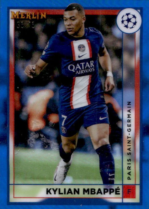 2022-23 Topps Chrome Merlin Kylian Mbappe Blue Refractor #35/75