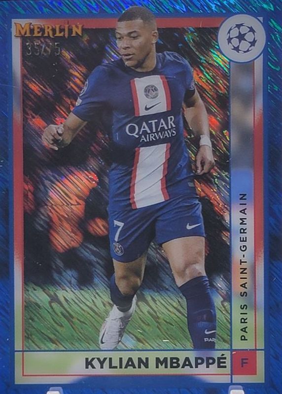 2022 Topps Merlin Chrome UEFA Kylian Mbappe Blue Shimmer Refractor #/75 PSG