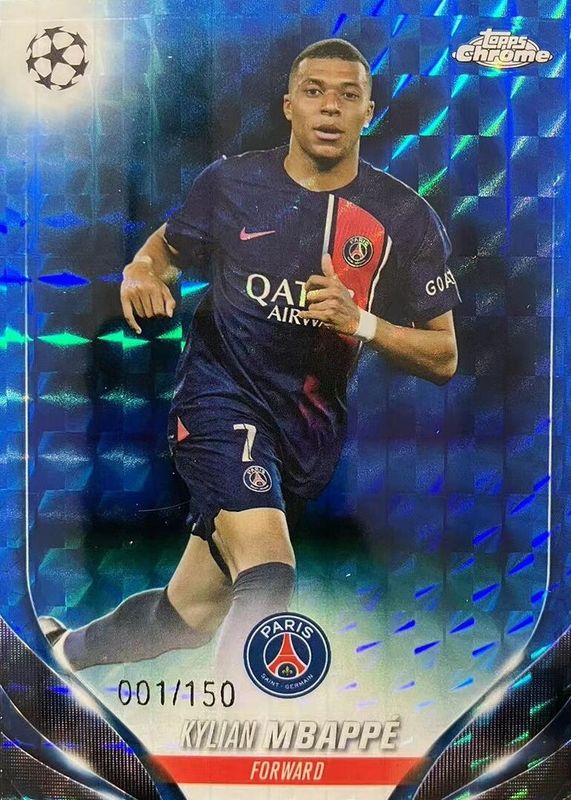 KYLIAN MBAPPE /150 2023-24 Topps Chrome UEFA Blue Geometric Refractor PSG #21