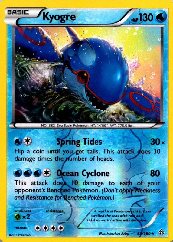The Kyogre 2015 XY: Primal Clash #053/160 Reverse Holo card in Raw TCG (Near Mint) condition has moved up $0.37 (+18.6%) in the last 30 days and was last sold for $2.36 .