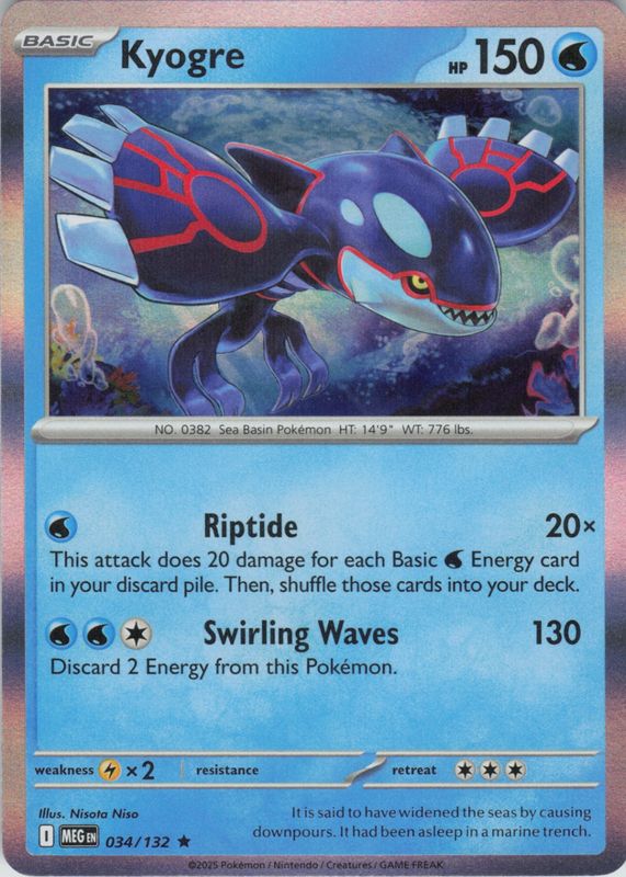 Kyogre 2025 Mega Evolution #034/132 Holo RAW TCG (NEAR MINT) Price Guide