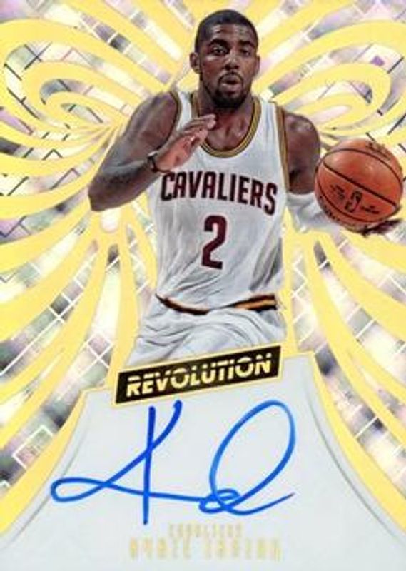 The Kyrie Irving 2016 Revolution #3 Autographs card is 1 of 17 Kyrie Irving's card variations in the 2016 Revolution set being tracked by Sports Card Investor, including Base, Astro, Fractal, Infinite, and Showstoppers.