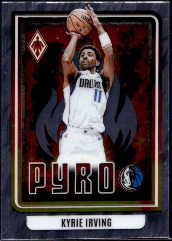 The Kyrie Irving 2023 Phoenix #22 Pyro card is 1 of 86 Kyrie Irving's card variations in the 2023 Phoenix set being tracked by Sports Card Investor, including Base, Blue Ice, Color Burst, Dream Weaver, and Hieroglyphs.