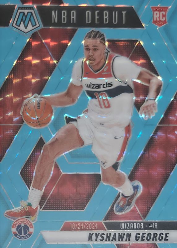 2024-25 Mosaic Kyshawn George RC Blue Fluorescent NBA Debut #57/75 Wizards