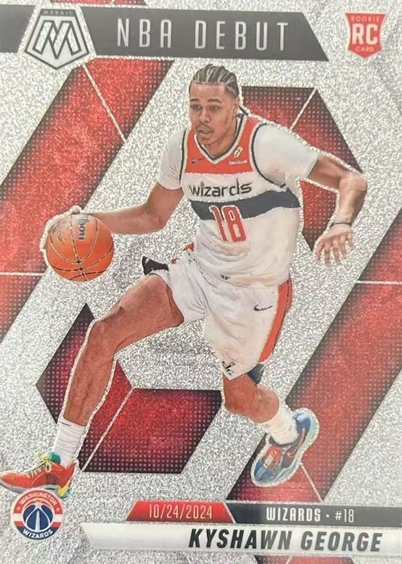 The Kyshawn George 2024 Mosaic #256 NBA Debut - Glitter /(SSP) Rookie card in Raw condition has not changed in price in the last 30 days and was last sold for $2.25 .