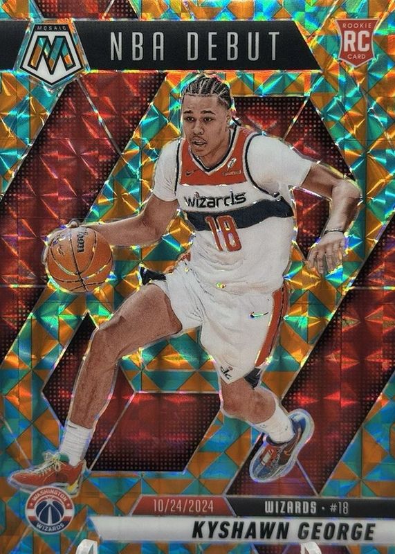 The Kyshawn George 2024 Mosaic #256 NBA Debut - Tessellation /15 Rookie card in Raw condition has not changed in price in the last 30 days and was last sold for $34.95 .