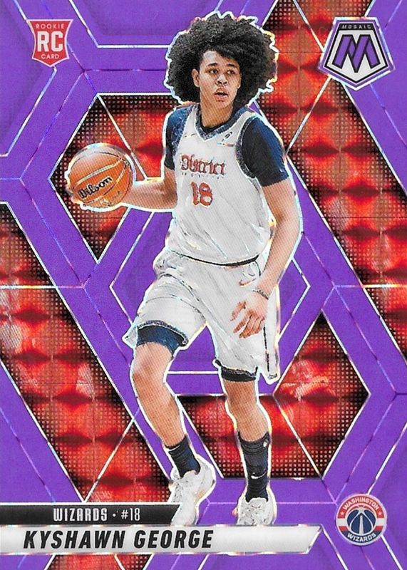 Kyshawn George 2024 - 25 Panini Mosaic Purple Fluorescent Mosaic /249 RC #247