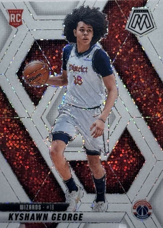 The Kyshawn George 2024 Mosaic #247 White Sparkle /(SSP) Rookie card in Raw condition has not changed in price in the last 30 days and was last sold for $35.00 .