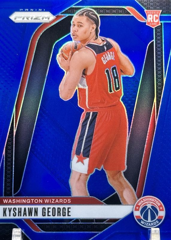 The Kyshawn George 2024 Prizm #257 Blue /199 Rookie card in Raw condition has moved down -$1.00 (-3.8%) in the last 30 days and was last sold for $25.00 .