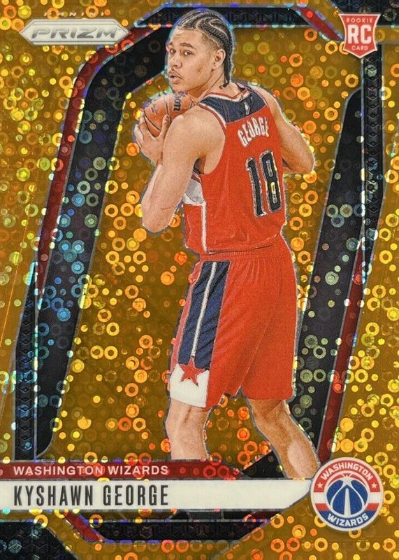 The Kyshawn George 2024 Prizm #257 Fast Break Orange /125 Rookie card in Raw condition has not changed in price in the last 30 days and was last sold for $15.50 .