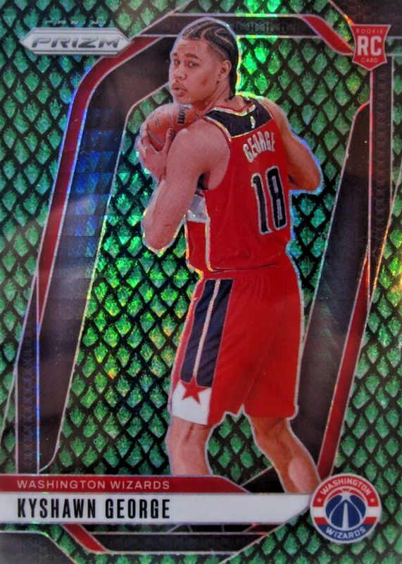 This card is 1 of 83 Kyshawn George's card variations in the 2024 Prizm set being tracked by Sports Card Investor, including Base, China Variation, Choice Blue Yellow Green, Fast Break, and Green.