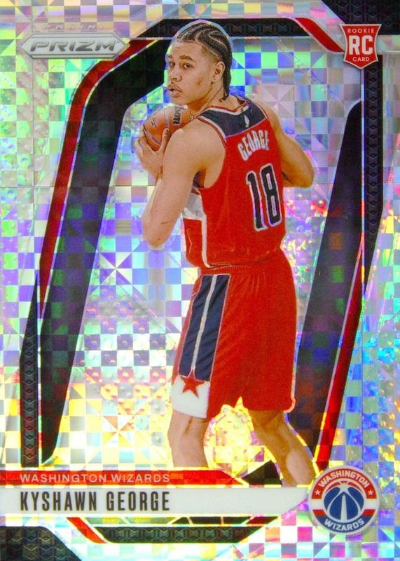 This card is 1 of 83 Kyshawn George's card variations in the 2024 Prizm set being tracked by Sports Card Investor, including Base, China Variation, Choice Blue Yellow Green, Fast Break, and Green.