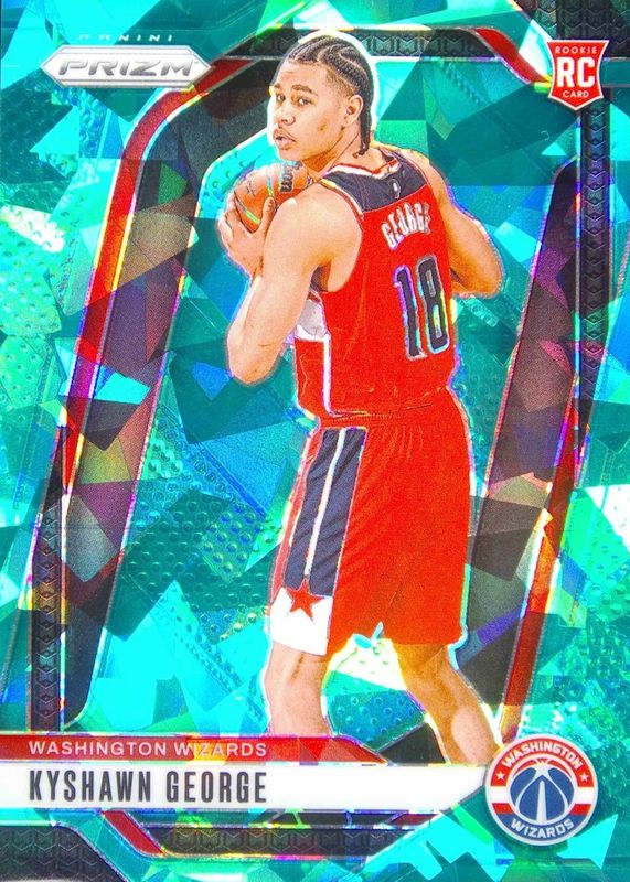 The Kyshawn George 2024 Prizm #257 Teal Ice /225 Rookie card in Raw condition has not changed in price in the last 30 days and was last sold for $26.18 .