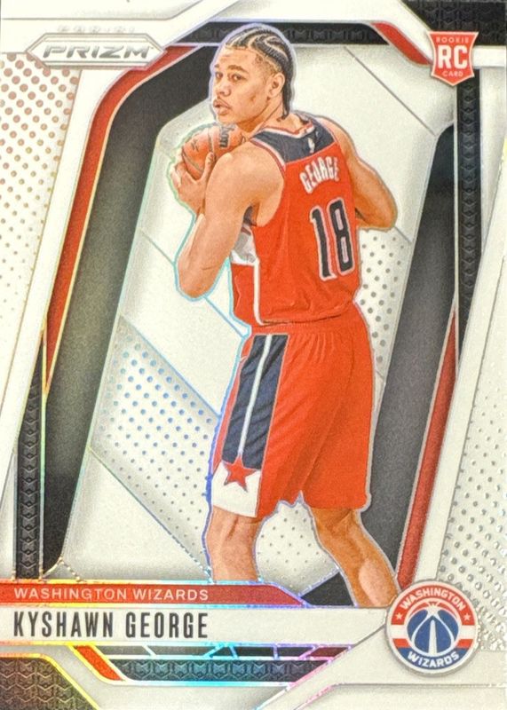 The Kyshawn George 2024 Prizm #257 White /175 Rookie card in Raw condition has moved up $6.50 (+76.5%) in the last 30 days and was last sold for $15.00 .