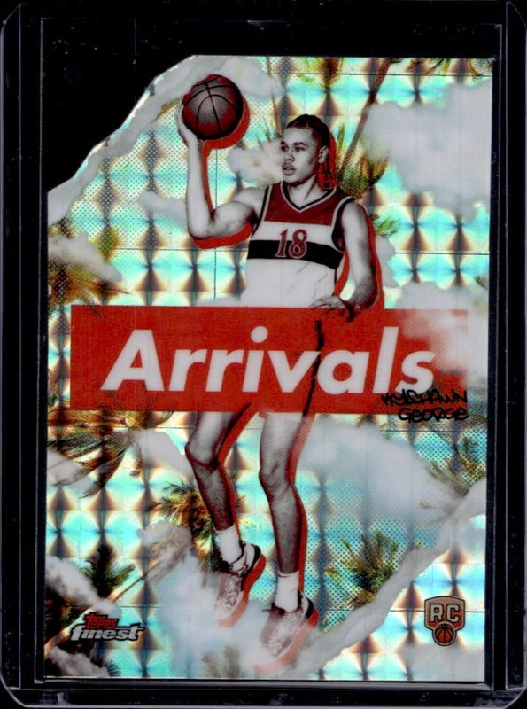 The Kyshawn George 2024 Topps Finest #A-20 Arrivals - Geometric Refractor Rookie card is 1 of 117 Kyshawn George's card variations in the 2024 Topps Finest set being tracked by Sports Card Investor, including Arrivals, Arrivals - Refractor, Arrivals - X-Fractor, Base Rare, and Base Rare - Geometric Refractor.