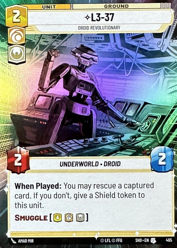 The L3-37 2024 Shadows of the Galaxy #465 Hyperspace Foil card in Raw condition has not changed in price in the last 30 days and was last sold for $2.25 .