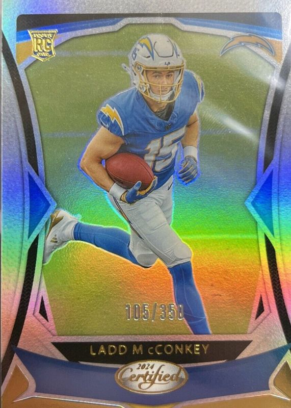 The Ladd McConkey 2024 Certified #125 Mirror /350 Rookie card in Raw condition has moved up $2.46 (+246%) in the last 30 days and was last sold for $3.46 .