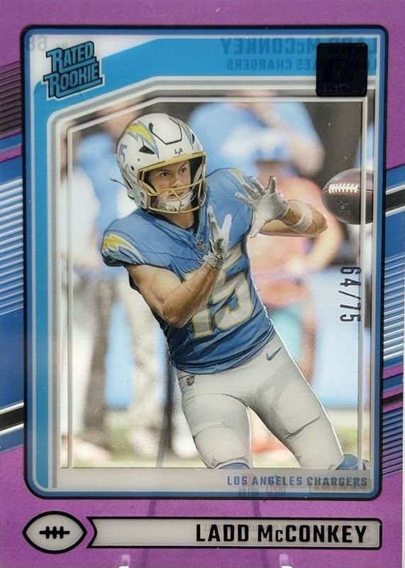 Ladd McConkey 2024 Clearly Donruss Rated Rookie Purple Parallel /75