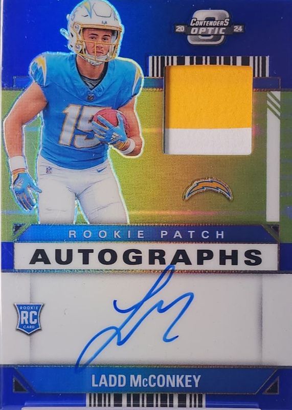 Ladd McConkey 2024 Contenders Optic #RPA-LMY Rookie Patch Auto - Blue /50 RAW Price Guide