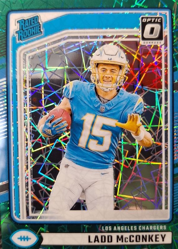 The Ladd McConkey 2024 Donruss #328 Optic Preview - Green Velocity Rookie card in Raw condition has not changed in price in the last 30 days and was last sold for $3.50 .