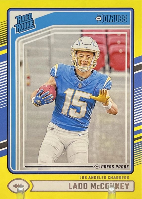 2024 Donruss Ladd McConkey Press Proof Yellow Rookie RC - Los Angeles Chargers