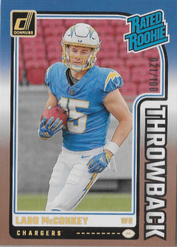 2024 Panini Donruss Football #23 Ladd McConkey Throwback Rated Rookie /100 NM