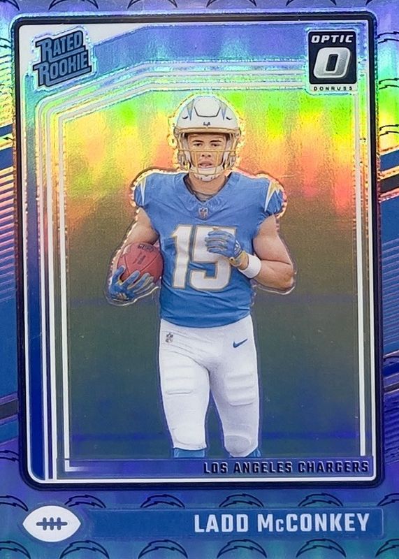 The Ladd McConkey 2024 Optic #266 Team Logo /32 Rookie card in Raw condition has not changed in price in the last 30 days and was last sold for $30.00 .