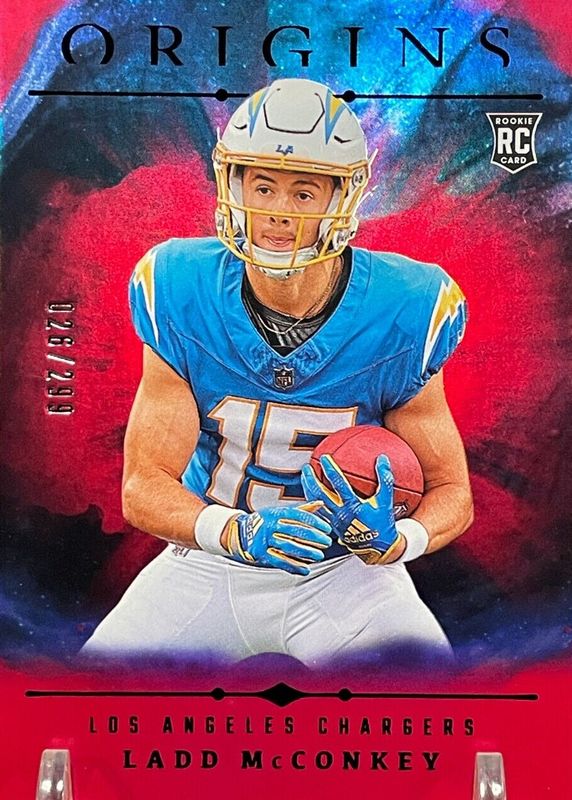 2024 Panini Origins - Rookies Ladd McConkey #139 Holo Red 046/299 (RC)