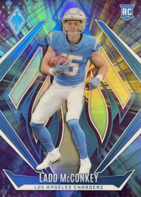 This card is 1 of 94 Ladd McConkey's card variations in the 2024 Phoenix set being tracked by Sports Card Investor, including Base, Hyper, Ice, International, and Lazer.