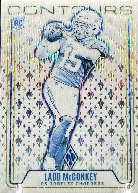 The Ladd McConkey 2024 Phoenix #CON-LMY Contours - Hyper Rookie card in Raw condition has moved up $3.76 (+380%) in the last 30 days and was last sold for $4.75 .
