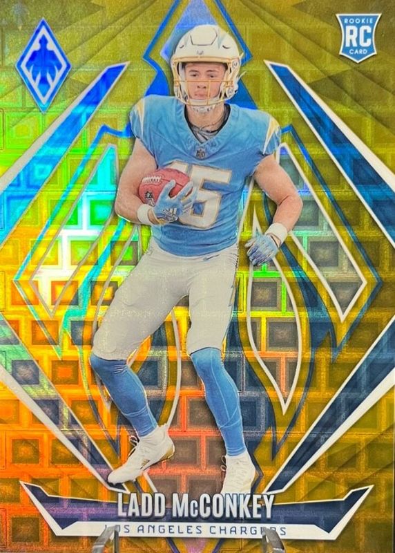 The Ladd McConkey 2024 Phoenix #216 Gold Pandora /10 Rookie card in Raw condition has not changed in price in the last 30 days and was last sold for $137.50 .