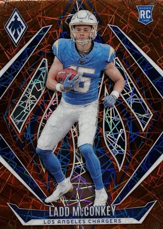 This card is 1 of 94 Ladd McConkey's card variations in the 2024 Phoenix set being tracked by Sports Card Investor, including Base, Hyper, Ice, International, and Lazer.