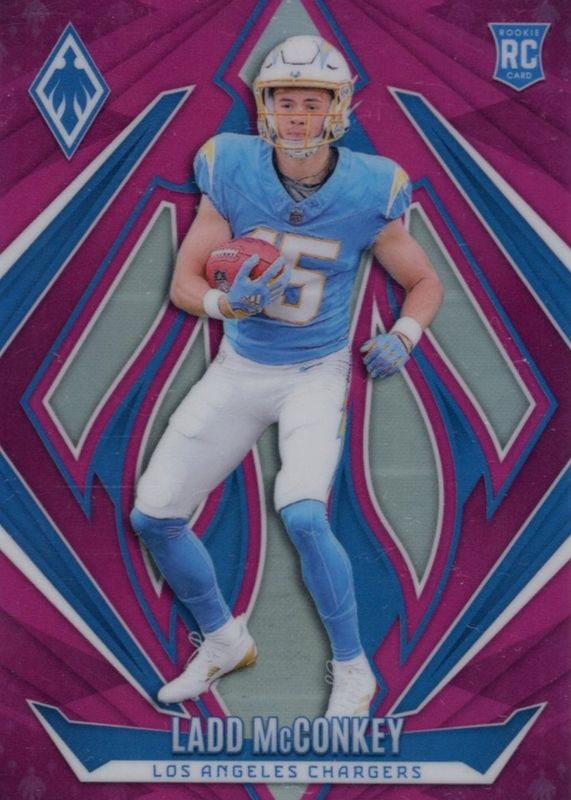 The Ladd McConkey 2024 Phoenix #216 Pink /40 Rookie card in Raw condition has not changed in price in the last 30 days and was last sold for $11.49 .