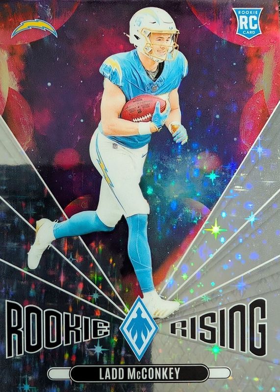 The Ladd McConkey 2024 Phoenix #RR-LMY Rookie Rising - Stars card in Raw condition has not changed in price in the last 30 days and was last sold for $2.99 .