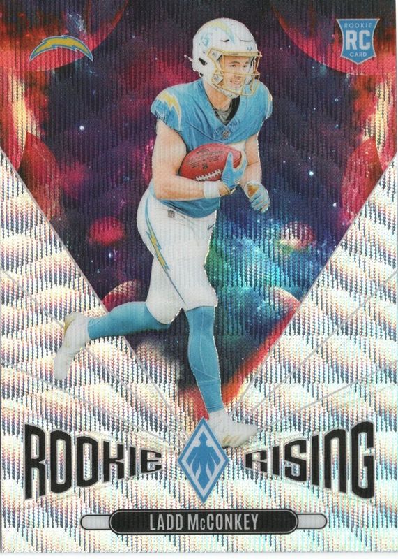 The Ladd McConkey 2024 Phoenix #RR-LMY Rookie Rising - Wave card in Raw condition has moved down -$0.50 (-33.6%) in the last 30 days and was last sold for $0.99 .