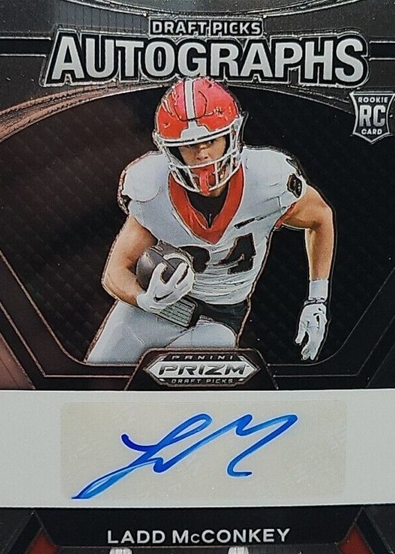The Ladd McConkey 2024 Prizm Draft Picks #DPA-LMY Draft Picks Autographs Rookie card in Raw condition has not changed in price in the last 30 days and was last sold for $13.00 .