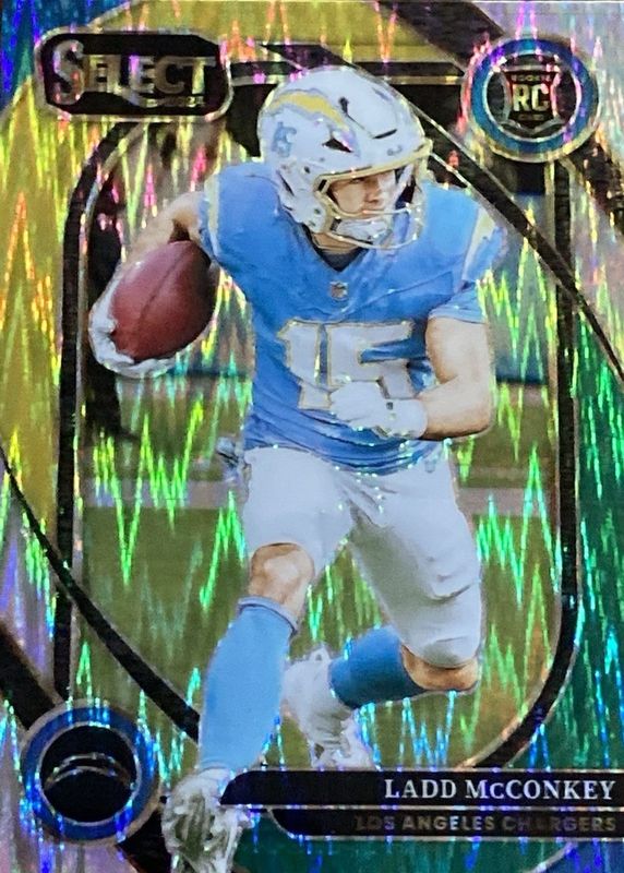 The Ladd McConkey 2024 Select #268 Club Level Green & Yellow Shock Rookie card in Raw condition has moved up $1.35 (+82.3%) in the last 30 days and was last sold for $2.99 .