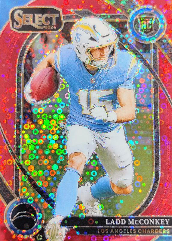 2024 Select Ladd McConkey Club Red Disco Prizm Rookie RC #25/49 Chargers