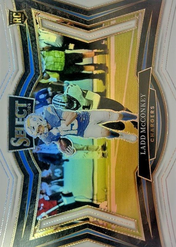 This card is 1 of 109 Ladd McConkey's card variations in the 2024 Select set being tracked by Sports Card Investor, including Club Level, Field Level, Club Level Black & Blue Shock, Club Level Black & Gold Shock, and Club Level Black & Green Shock.